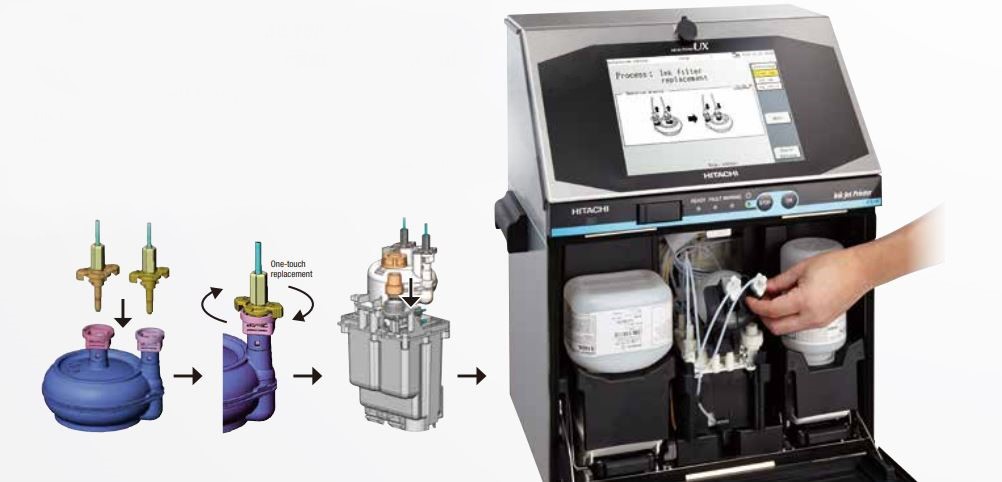 Máy in HITACHI Series được thiết kế dễ sử dụng, thân thiện với người dùng với màn hình cảm ứng 10.4 inch. Khả năng lưu trữ 150 tin cơ bản. Khả năng in phun date lên đến 6 dòng, 240 ký tự in trên 6 dòng riêng biệt và tốc độ in của 1,148 ký tự trên mỗi giây, lưu trữ 300 bản tin, (Option lên đến 2000 tùy thuộc vào dữ liệu). Màn hình: Cảm ứng Ngôn ngữ: Tiếng Anh – Tiếng Việt Bề Mặt in: Nhựa, giấy, gỗ, đá, xi măng, thủy tinh, kim loại, kính,….v..v Ký tự in: Chữ cái abc, qr code, barcode...